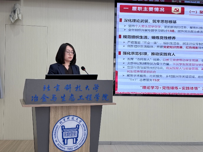 述职评议采取现场述职与书面述职相结合的方式进行。会上,教职工党支部书记、部分学生党支部书记依次进行现场述职,重点围绕五个方面进行汇报:一是深入学习贯彻习近平新时代中国特色社会主义思想情况;二是增强基层党组织政治功能和组织功能情况;三是落实基层党建重点任务情况;四是加强党员队伍建设情况;五是履行管党治党责任情况。述职中,各位书记全面总结了过去一年抓基层党建工作的做法成效,深刻剖析了存在的问题和不足,并提出了下一