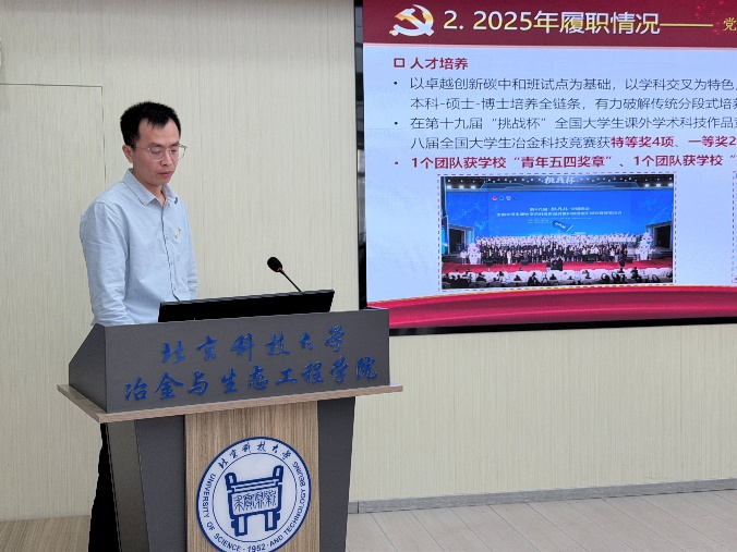 2026年3月19日,tyc7111cc太阳成集团党委在冶金楼616会议室召开2025年度党支部书记抓基层党建工作述职评议会。学院党委委员、班子成员,全体师生党支部书记及党员代表参加会议。会议由冶金党委书记宁晓钧主持。