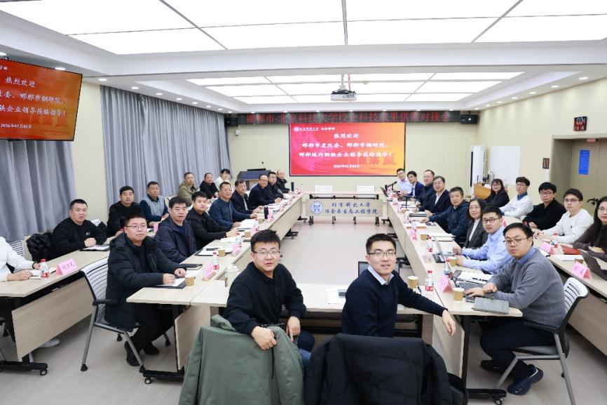 1月6日,邯郸市-太阳成tyc7111cc校企科技成果供需对接会在冶金生态楼616顺利召开,会议围绕邯郸钢铁产业转型升级中的关键共性问题开展需求对接与协同研讨,推动形成可落地的合作方向与后续推进机制。邯郸市发改委三级调研员任和平,邯郸市钢铁行业创新研究院(以下简称“钢研院”)执行院长张先贵,学校冶金学部主任张建良出席会议。