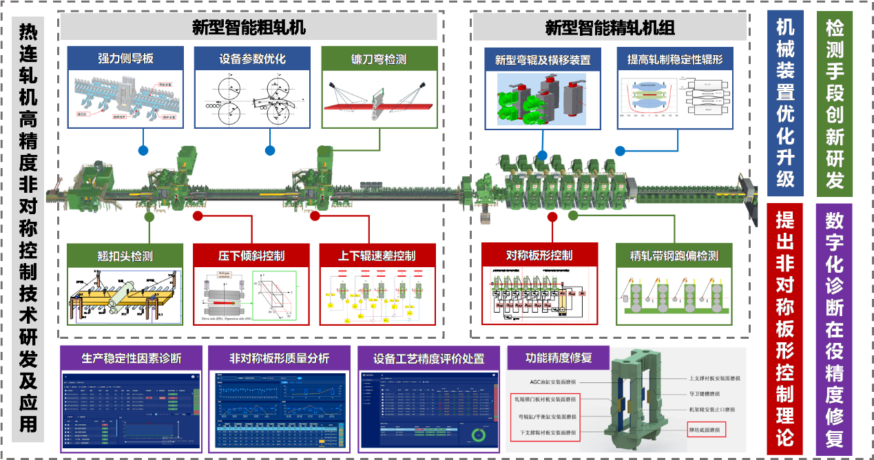 “热连轧机高精度非对称控制技术研发和应用”技术组成示意图