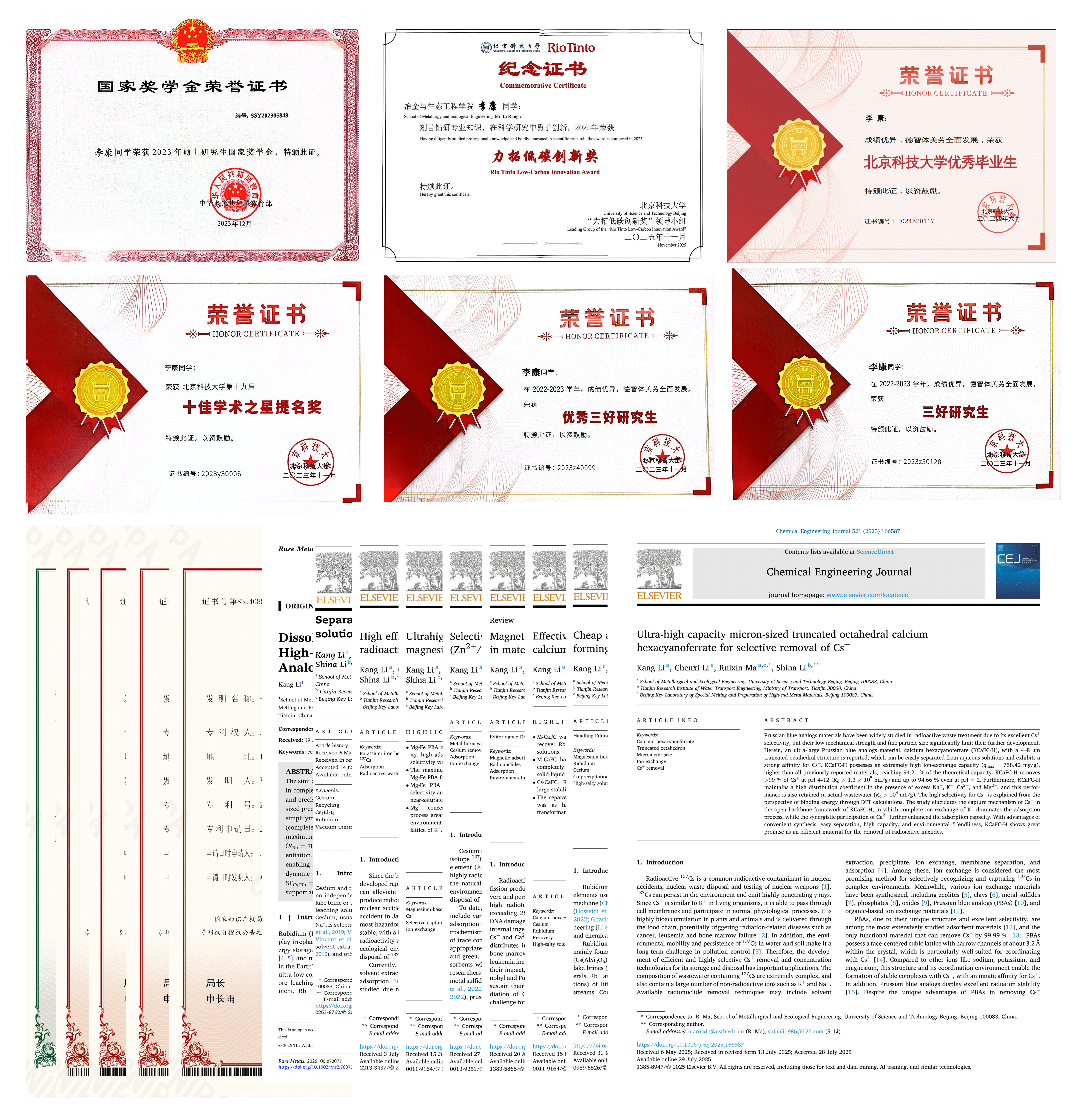 在科研的道路上,我始终秉持着“脚踏实地、精益求精”的信念,将探索的热情融入每一个实验、每一篇论文的撰写中。面对复杂的技术难题,我从未退缩,而是选择在文献中深耕、在实验中反复验证,常常为理清一个数据逻辑或优化一项工艺参数钻研至深夜。实验记录本上密密麻麻的字迹,见证着从理论推演到实践落地的完整历程。正是这份执着,让我逐步攻克多金属梯度分离与界面强化提纯等关键技术,并在高稳定电极材料的可控合成机制研究中取得积极进展。所有的付出最终凝结为一篇篇学术论文与专利成果,也让我有幸获得多项荣誉。这些荣誉不仅是对过往努力的肯定,更是对我持续攀登科研高峰的鞭策。科研之路虽无坦途,但我始终坚信,唯有以汗水浇灌热爱,方能在枯燥中开出创新之花,为国家战略需求的突破贡献自己的一份力量。