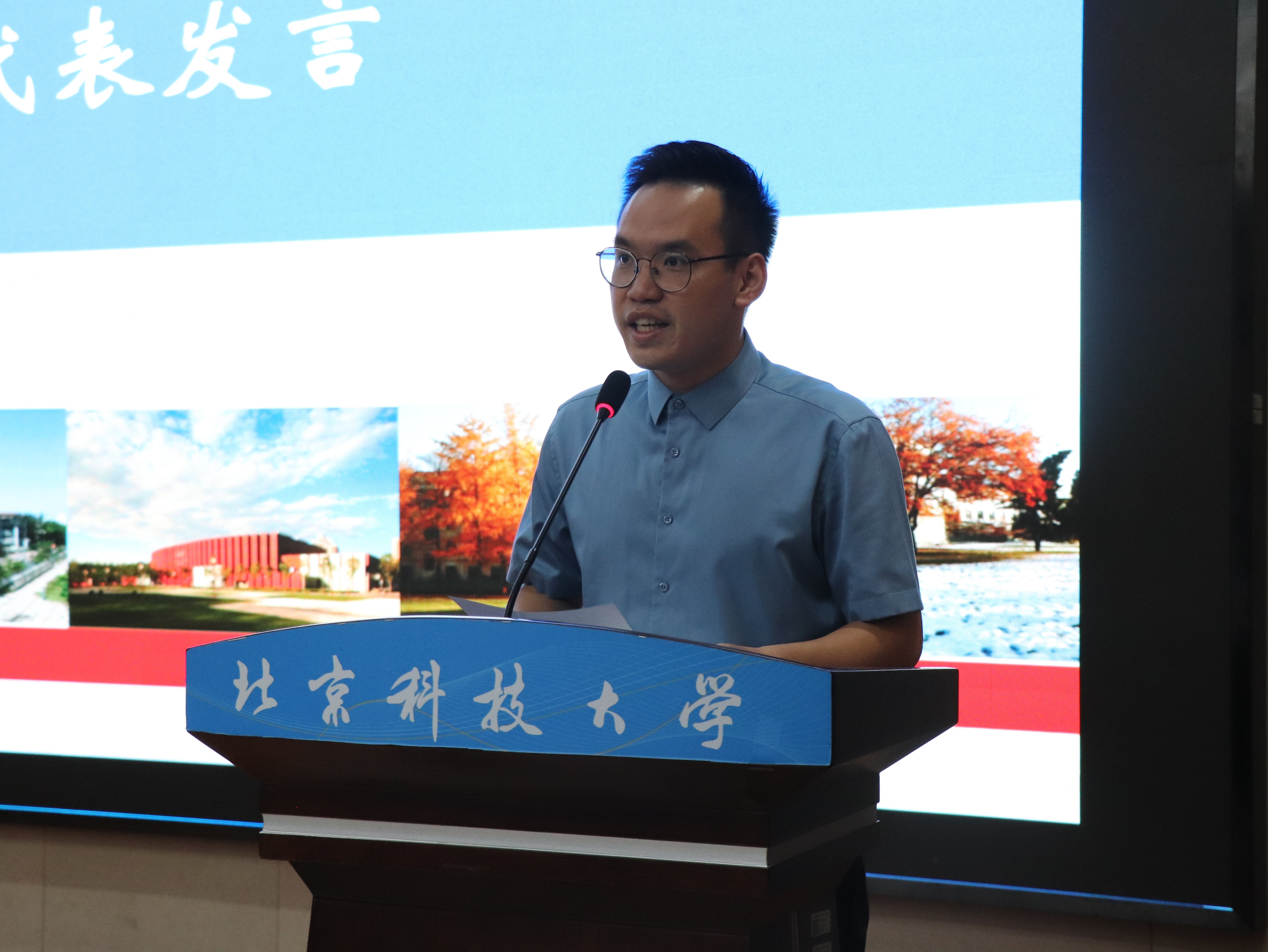 冶硕2205班的谭宇博代表在校生发言,他深情回顾了自己北科岁月中的成长点滴,寄语2023级学小炉宝们牢牢地把握人生发展黄金期,以青春之我奋发学习,更好奉献党和人民,以奋斗之我书写属于自己的精彩人生。唯有永久奋斗、乘风而上、融入大局方能行稳致远。有心必有为,有才必能为。