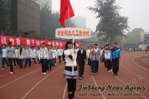 此次比赛我们冶金学院的女生们不让须眉,在4*100米接力赛中你争我夺,虽然没有胜过体育特长生,但依旧获得了第2名的好成绩。其中一名来自新疆名叫维尼拉.伊利哈尔的参赛选手在接受采访时说:“这次比赛没有获得第一名确实感到很遗憾,但依然很高兴。刚进入大学校园就能代表学院参加比赛真的感到很荣幸。”此外男子4*100也同样取得亚军的好成绩。