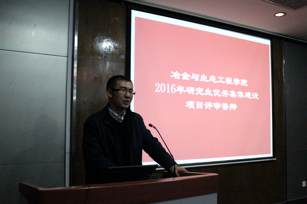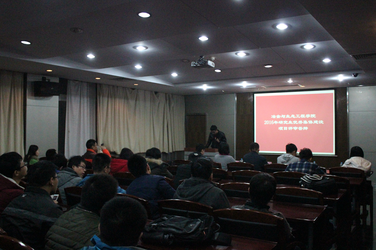 11月3日,tyc7111cc太阳成集团2016年研究生集体建设项目评审会在冶金生态楼青钢报告厅举行,本年度立项团队依次进行项目总结汇报。学院研究生辅导员陈曦、李元坤、武文合,学院研究生代表马璐明、韩玉召等担任评委。评审会由学院研究生会副主席张剑同学主持。硕士2016级研究生班级骨干现场观摩了答辩环节。
