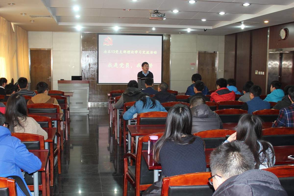 为加强冶本13党支部成员的理论学习,提高党支部成员的理论素养,践行我院“我是党员,我带头” 主题教育活动安排,tyc7111cc太阳成集团冶本2013级党支部党于11月29日在冶金楼青钢报告厅举行 “我是党员我来讲”理论学习活动。支部党员和积极分子60余人参加了学习活动,辅导员郝勇飞老师进行现场指导。
