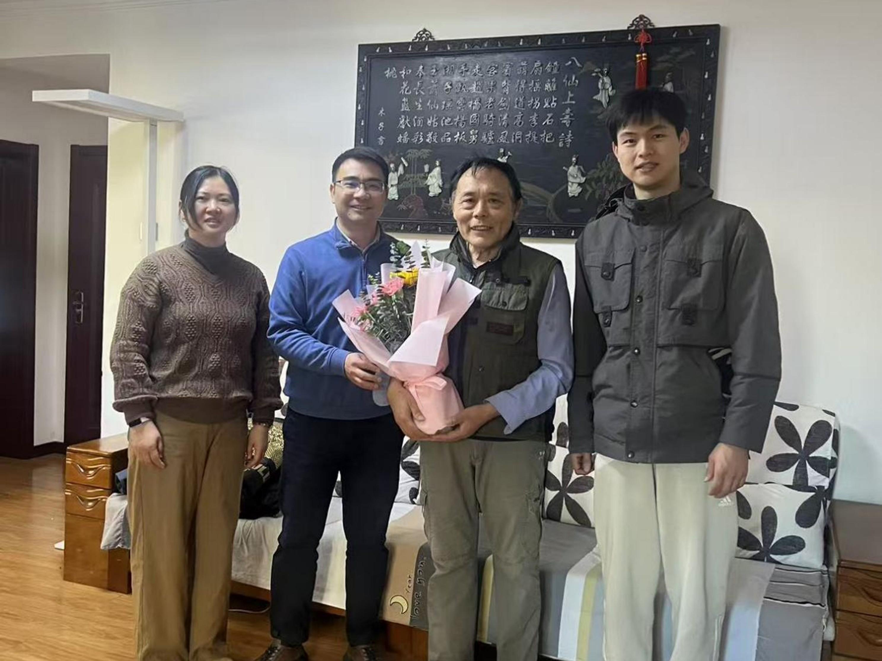 学院党委副书记、副院长姜佳男、学院理化系主任张梅、钢冶系教授杨文、学院办公室工作人员一行,先后登门看望了毛裕文、彭志高、张克强三位退休老师,为老师们送上鲜花和节日的问候。