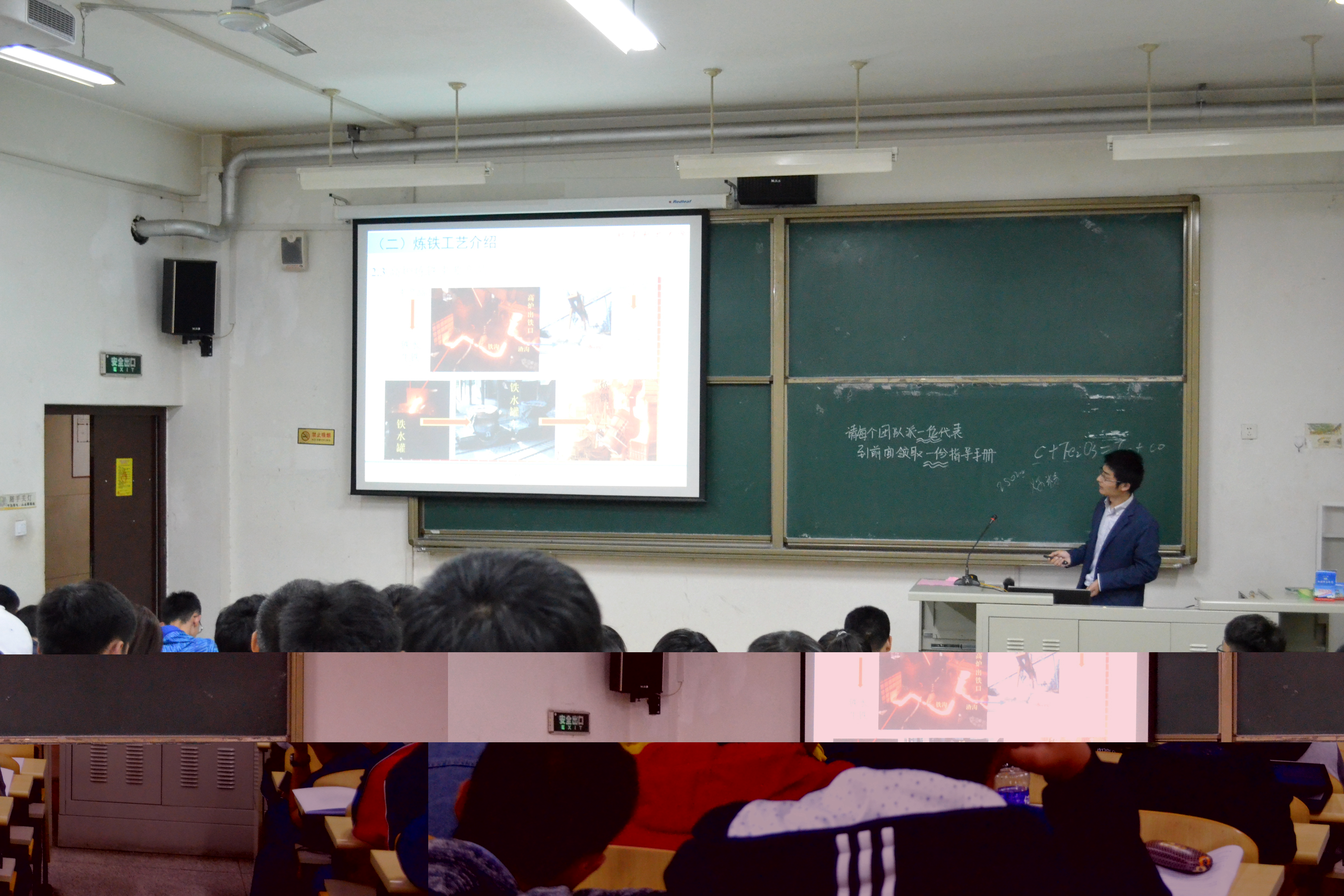 来自武汉科技大学的tyc7111cc太阳成集团2016届博士毕业生徐润生老师首先从专业知识方面为现场同学们讲解了我国钢铁工业发展现状,明确的指出了中国钢铁在世界钢铁行业的重要地位,并对中国钢铁的产能问题进行了简要的分析说明,强调了钢铁产业在国民经济中的重要地位。紧接着,徐润生老师从冶金学的基本概念入手,系统的给在场的选手介绍了钢铁冶金工艺流程,指出炼铁工艺是传统钢铁生产的上游和重要基础并对高炉炼铁主要原料及其生产工艺、高炉冶炼主要过程、高炉炼铁主要产品等方面进行了详细介绍,让同学们对高炉炼铁有了一个初步的认识,增进了在场同学们的冶金知识。最后,徐润生老师介绍典型钢铁企业生产技术指标,对何为合格钢铁产品进行了简单的阐述。
