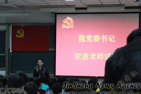 2011年3月25日晚七点,我校第166期学生业余党校入党积极分子培训班开学典礼暨第一讲于逸夫楼107教室准时召开。tyc7111cc太阳成集团党委书记宋波、党委副书记王春义、马列主义学院左鹏教授、2010级本科生辅导员李萌出席了会议,冶金学院团委常务副书记尹传举参加并主持会议,本、硕、博入党积极分子参加了会议。本次培训班旨在提高入党积极分子对党的认识,端正其入党动机。
