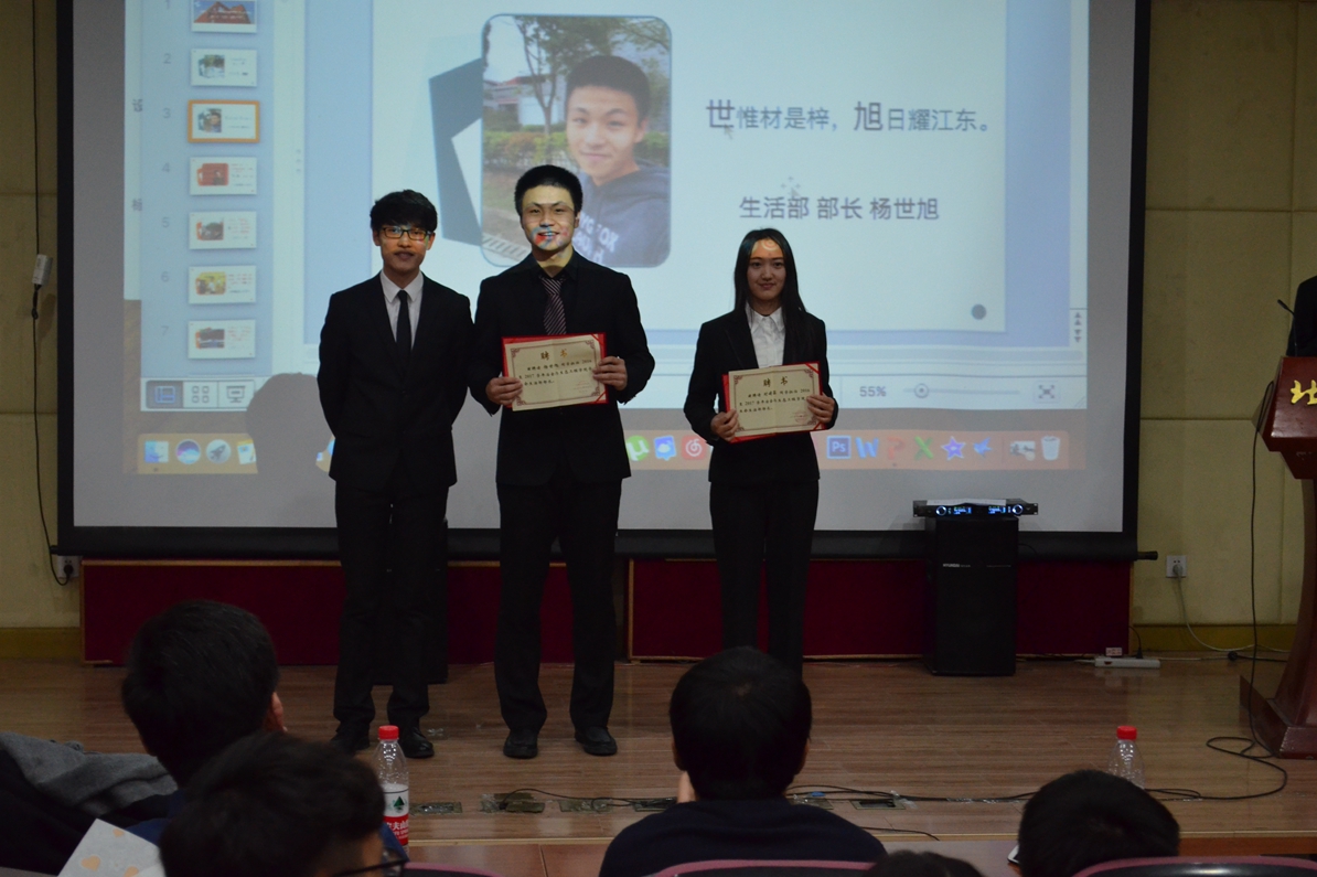 首先团委学生会新闻中心各部门按照顺序依次进行述职。各部门部长依次上台对本部门进行介绍、总结2016年完成的工作、并对即将到来的2017年的工作做出规划。部长们准备充分,讲解氛围严肃而不失活泼。他们纷纷表示在冶金学院团委学生会这个大家庭里锻炼了自己,收获了朋友,并表达了对分管主席的感谢。现场有部长为分管主席送上精心准备的礼物,气氛非常温暖,直冲泪点。当各部门汇报这一年的工作时,台下观众也是一片称赞,深深被他们的辛苦所感动。“春之声”文艺晚会、“至尊杯”挑战赛、新生文艺晚会、宿舍文化节、“钢魂杯”辩论赛、棋王争霸赛……一项项活动已经不再分属于某个部门,而是承载着团委学生会级新闻中心所有成员的感情。