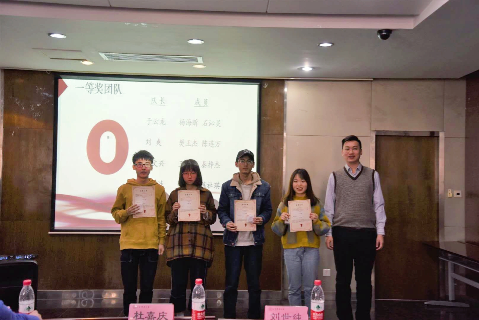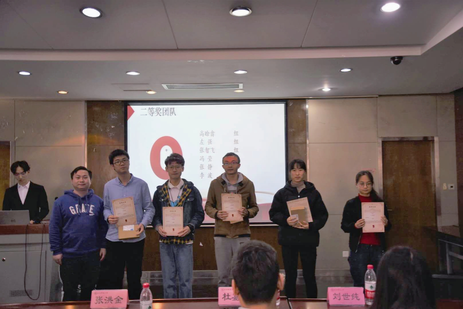 而后的颁奖环节中,分别由冶金学院团委书记杜嘉庆、冶金学院硕士张洪金和冶金学院团委副书记刘世纯给一、二、三等奖的队伍颁发了荣誉证书及奖品。