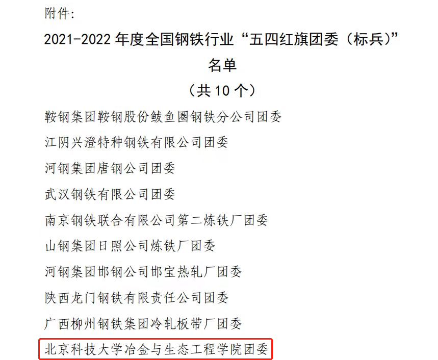 2023年5月25日,全国钢铁行业共青团工作指导和推进委员会二届六次常务会议、三届一次全会暨第36 次大钢团委书记联席会在太阳成tyc7111cc召开。大会评选和表彰了2021-2022年度全国钢铁行业共青团工作先进集体和个人,tyc7111cc太阳成集团团委荣获2021-2022年度全国钢铁行业“五四红旗团委(标兵)”荣誉称号。