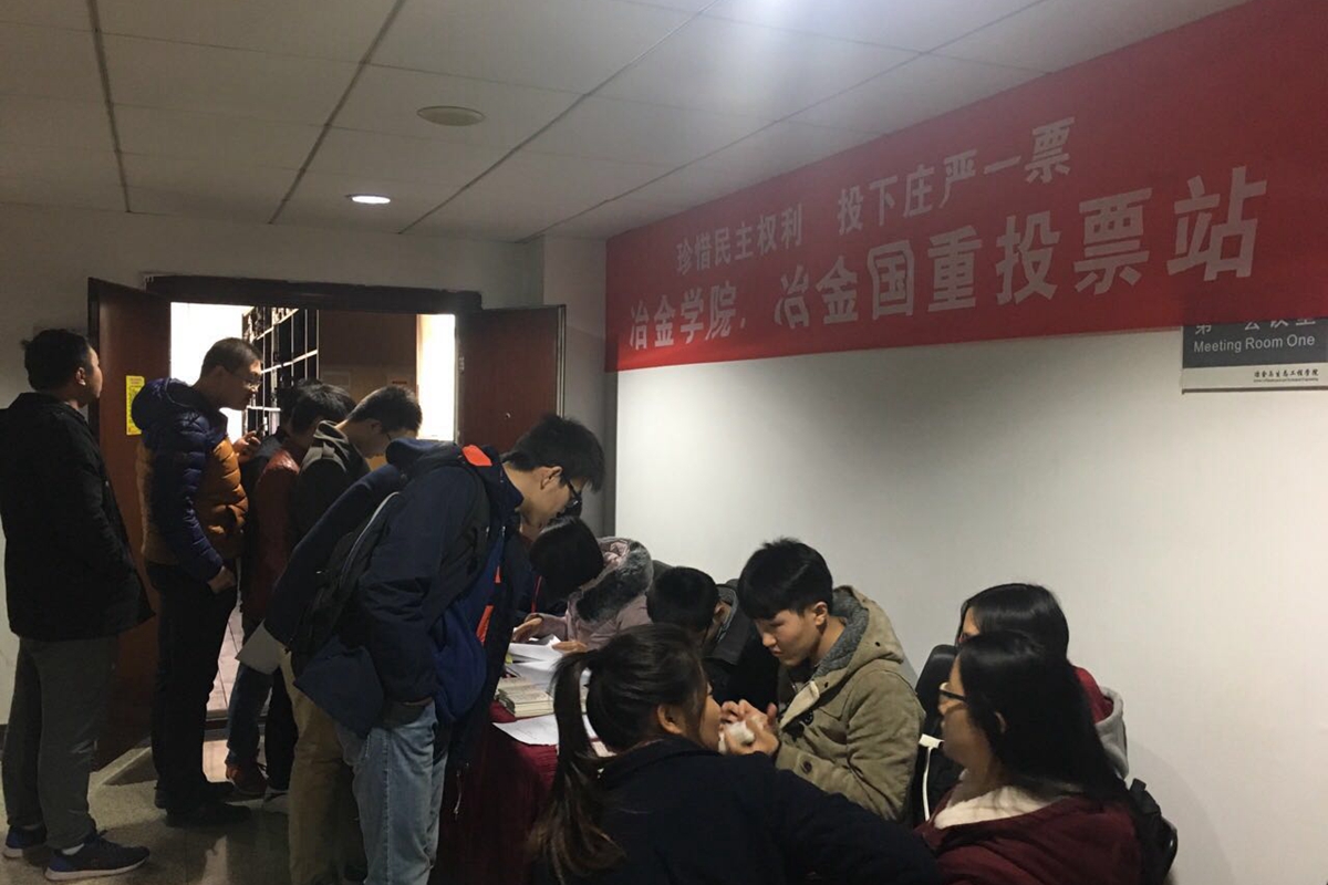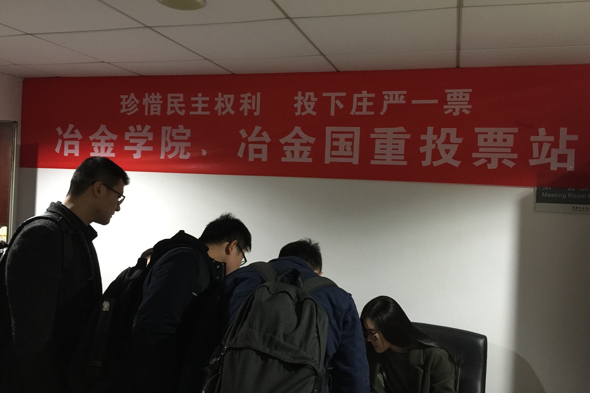 选举开始后,大会现场选民认真填写选票,并依次投出自己神圣的一票。随后,冶金学院1855位选民以饱满的热情参加到投票选举工作中来,积极履行民主权利,投下了庄严而神圣的一票。