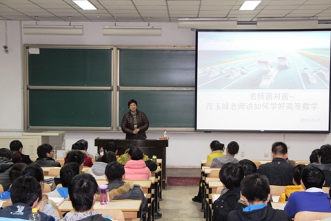 3月12日晚,由tyc7111cc太阳成集团冶本12级年级组主办的“名师面对面-范玉妹老师讲如何学好高等数学”活动在逸夫楼107教室成功举办。本次活动特别邀请到了太阳成tyc7111cc“我爱我师”评选金质奖章获得者数理学院范玉妹教授,出席本次活动的还有tyc7111cc太阳成集团老干部辅导员何淑兰老师、冶本12级辅导员王洋老师。