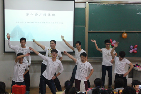 晚会节目精彩纷呈、创意无限:冶金1405班表演的第八套广播体操幽默别致,伴随着节奏强劲的音乐,同学们整齐划一的动作引得现场观众捧腹大笑;趣味舞蹈“伪千手观音”更具特色,五个男生的反串表演将全场气氛推入高潮;冶金1407与冶金1408班男生共同演唱《同桌的你》,温柔的嗓音使全场观众都沉浸在悠扬而青涩校园旋律中,久久不能自拔。