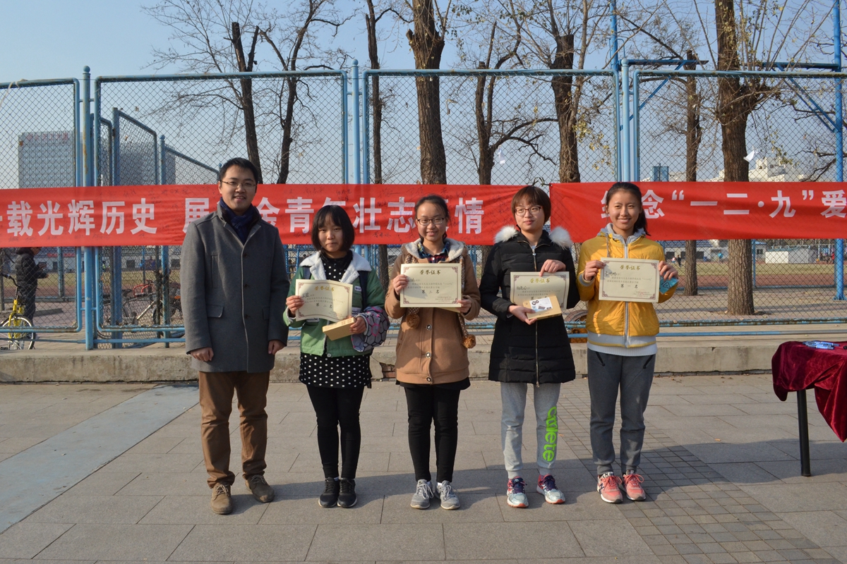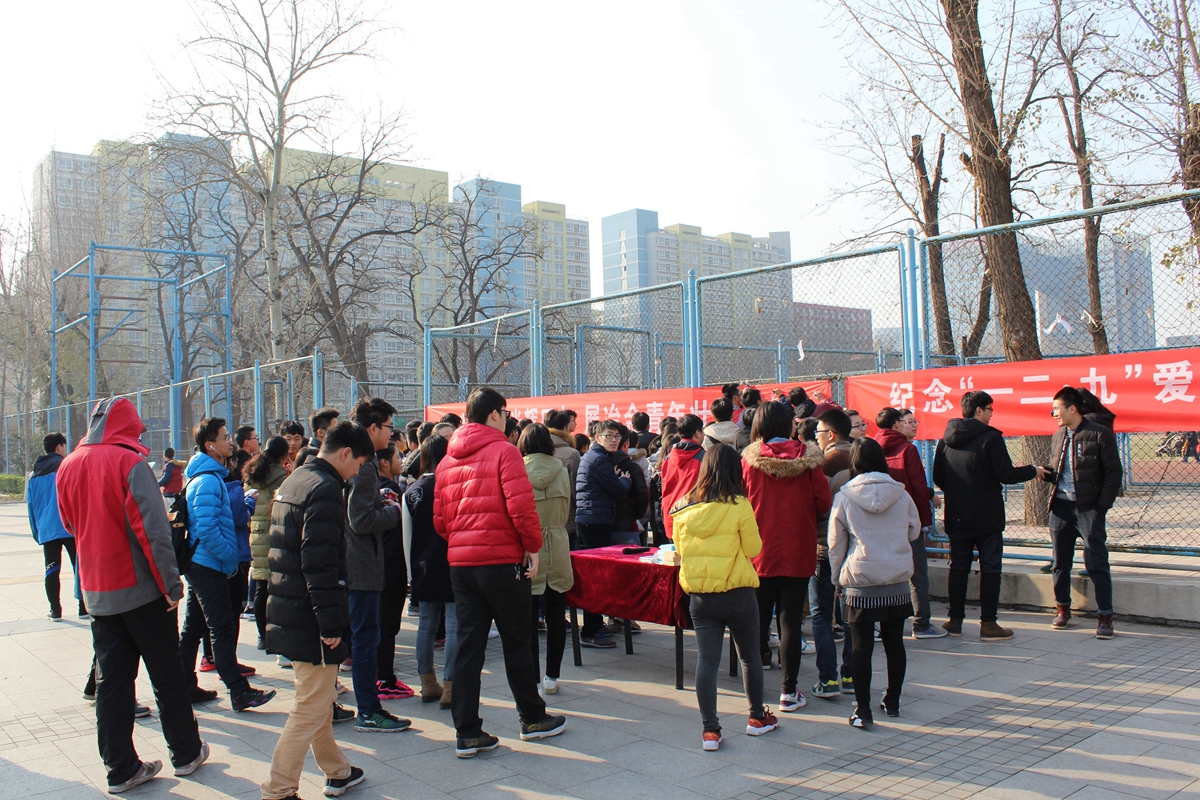 12月3日上午,tyc7111cc太阳成集团纪念“一二•九”爱国运动81周年长跑比赛在五环广场举行。tyc7111cc太阳成集团150余名青年学生积极参加本次比赛,每名参赛同学在进行个人比赛的同时,使用手机计步软件记录自己的跑步距离,为集体共同完成129公里的目标拼搏努力,用自己的实际行动树强国之志,践爱国之行。
