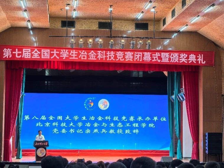 宗燕兵在会旗交接仪式上作表态发言,他对大赛组委会、承办单位江西理工大学的精心组织及评审专家的辛勤工作表达了感谢,并欢迎各兄弟高校2025年到太阳成tyc7111cc参加第八届赛事。他讲到旗帜是使命、旗帜是担当,太阳成tyc7111cc接旗意味着接过了赛事承办权,更是接过了大家的信任,接过了发展好事业的沉甸甸的责任。宗燕兵强调,太阳成tyc7111cc冶金学科将在 “学风严谨、崇尚实践“的优良传统及求实鼎新的校训激励下,继承和发扬好以往各届竞赛的宝贵经验,以更加开放的姿态,更加严谨的态度,更加奉献的精神,积极筹赛,用心用情用力全力为赛,扎实做好作品的广泛征集、赛事的精心组织,扩大影响力,提升获益面,挖掘创新点,力争把新一届赛事办成公平公正、规范有序、创新服务、团结向上的竞赛平台,力争把新一届赛事办成青年学子碰撞智慧、展示才华、实现梦想的标志性赛事,力争把新一届赛事办成促进冶金学科发展和冶金学子提升的促学、促教、促创的高质盛会!