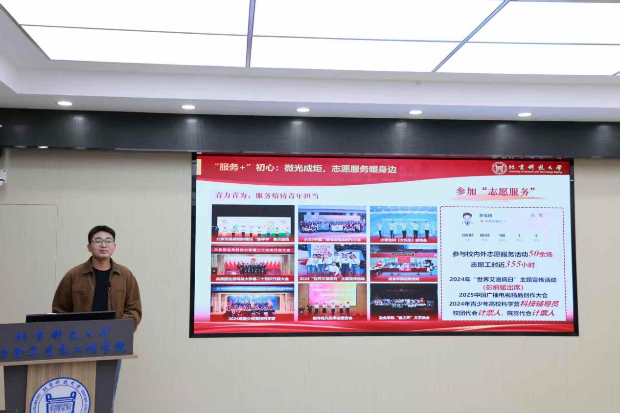 他热忱、坚守、奉献,累计参与校内外志愿服务50余场,足迹遍及校园活动保障、社会公益宣传、科技助老与会议服务。从北京基层调研到宁夏青柑计划体悟山海情,从新疆阜康冶炼厂调研到北科大雄安校区探访,从湖南永州、陕西汉中支教到四川特殊儿童调研,他与其他志愿者一道,用脚步丈量祖国大地,用点滴行动诠释雷锋精神,在深入基层中践行青春担当,以“服务+”使命书写新时代志愿故事。
