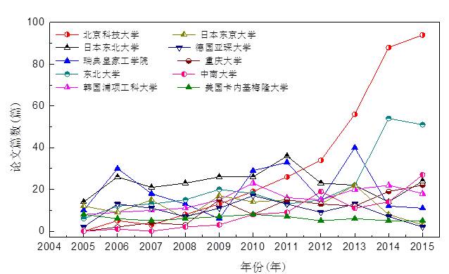 经统计,2005~2015年的在钢铁冶金国际四大知名期刊《Metallurgical and Materials Transaction B》(美国)、《ISIJ International》(日本)、《Steel Research International》(德国)、《Ironmaking and Steelmaking》(英国)上发表的所有文章,第一作者单位为中国的文章已经从2005年的5.8%(一共27篇)升高到2015年35.0%(297篇),从2012年开始第一作者单位为中国的文章高居世界第一。