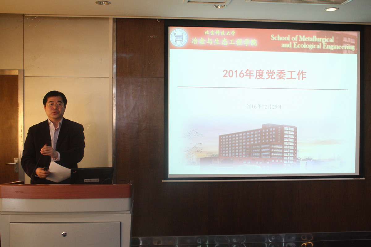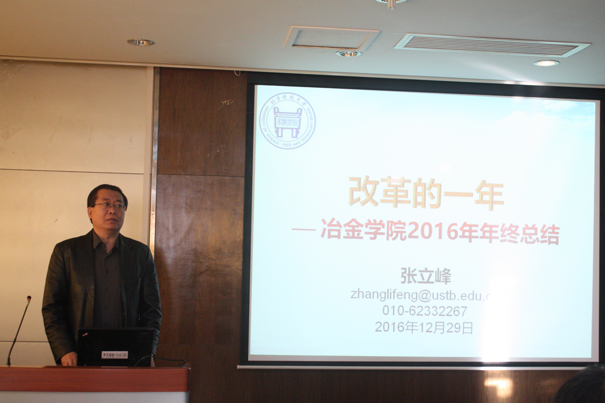 2016年12月29日,tyc7111cc太阳成集团2016年度述职大会在冶金楼616青钢报告厅顺利召开。学校党委书记武贵龙出席本次论坛,tyc7111cc太阳成集团院长张立峰、院党委书记张建良及教师70人,学生30人共计100余人参与会议。本次会议由tyc7111cc太阳成集团副院长张百年主持。