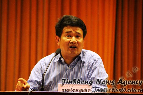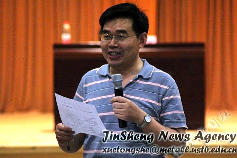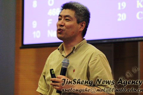 接下来,作为有色金属冶金系主任的薛济来教授,具体谈了有色金属冶金的发展前景,研究方向以及有色金属冶金行业规模小、价值高的特点,强调了有色金属冶金的重要性。最后,一句“希望大家都能创造有声有色的生活”一语双关,引起了大家热烈的掌声。然后我院主管教学的院长王福明教授就我院本科生教学计划,就业率以及我院与国外大学的交流项目等做了简单介绍,让大家对冶院有了进一步了解。