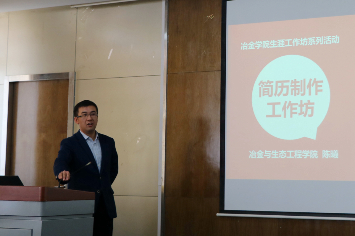 4月18日下午,tyc7111cc太阳成集团学生求职简历指导工作坊活动在青钢报告厅举行。冶金学院研究生工作组组长、就业指导教师陈曦老师围绕简历制作与就业技能提升,为现场同学们指点迷津。冶金学院学生工作办公室主任、研究生辅导员李元坤老师参加活动。