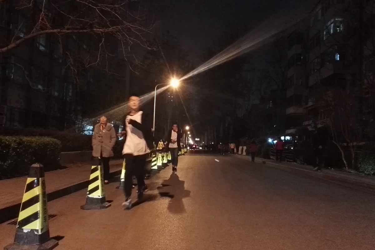 本次“荧光夜跑”以团校各个班级为单位,各位成员首先在校田径场集合、签到、分发白T-shirt、抽取夜跑路线。一切准备就绪后,裁判张月鑫和薛梦宇同学向学员们说明比赛规则以及注意事项。选手们按照规定路线到达相应站点后在规定时间内完成游戏即可获得一次涂抹相应颜色荧光粉的机会,最终根据所用时间的长短进行排名,记录于团校总成绩中。