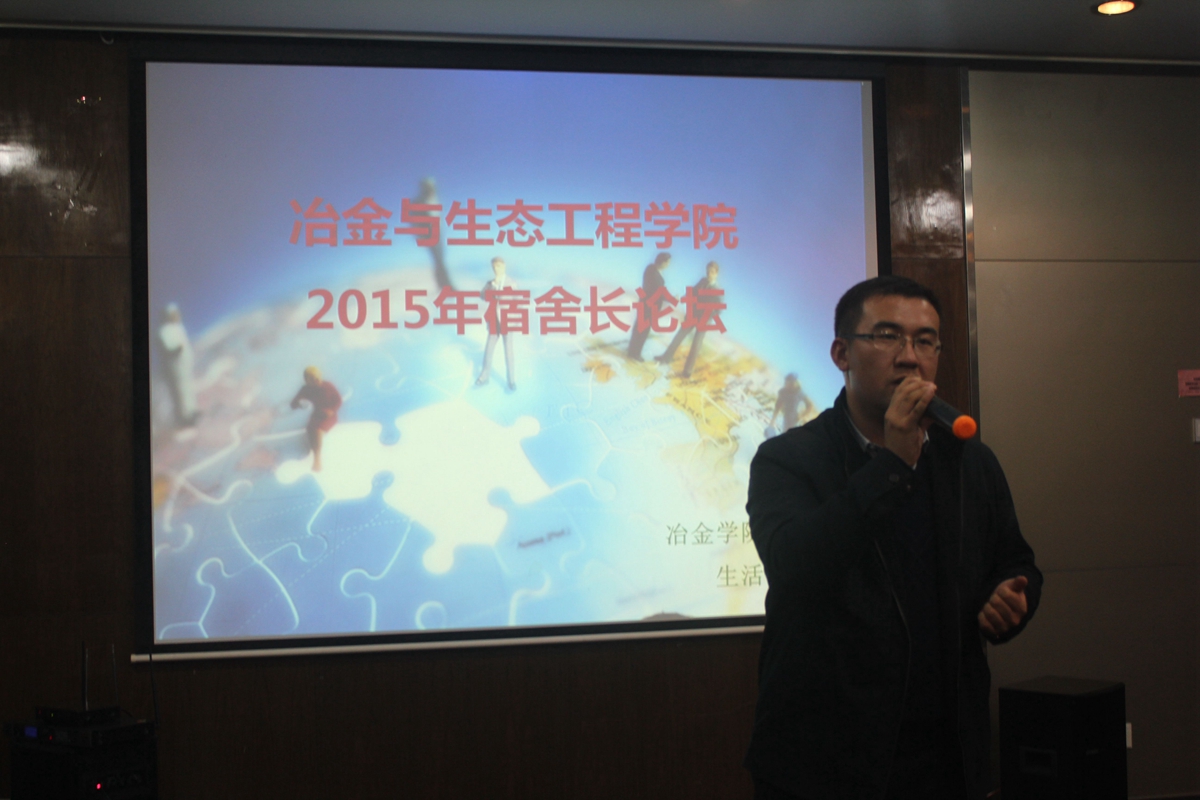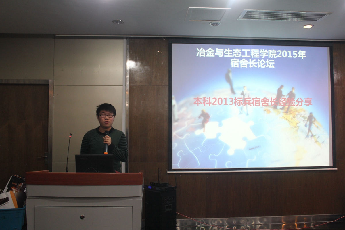 为加强宿舍长沟通交流,帮助宿舍长同学们更好了解宿舍长职责与角色,11月4日晚,tyc7111cc太阳成集团第三届宿舍文化节宿舍长论坛活动在冶金生态楼青钢报告厅举行。学院团委书记杨志伟老师、学院本科2015级辅导员陈曦老师,学院团委学生会主席谢宏亮同学、副主席王路召同学应邀参加论坛活动。本科2015级新生宿舍长以小组为单位,围绕“如何做一名标兵宿舍长”主题进行主题发言,学院本科2013级标兵宿舍长代表与在场同学们分享了标兵宿舍创建经验。