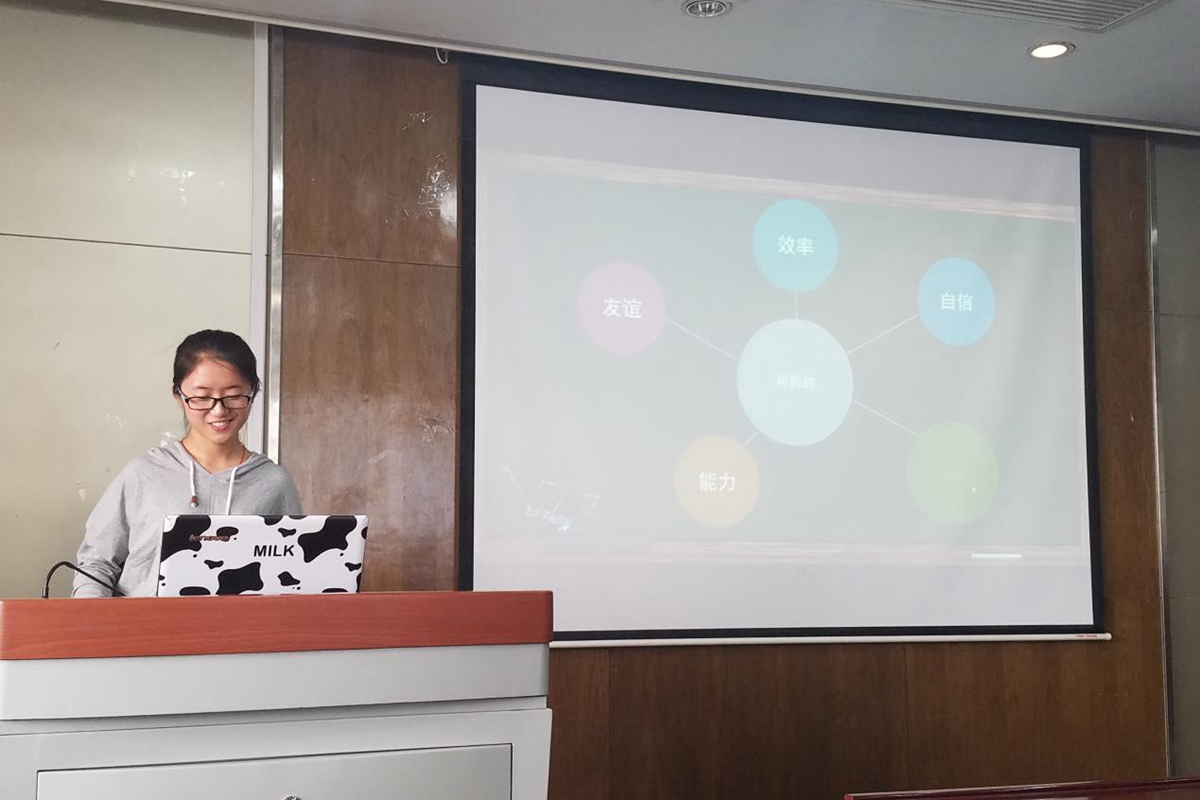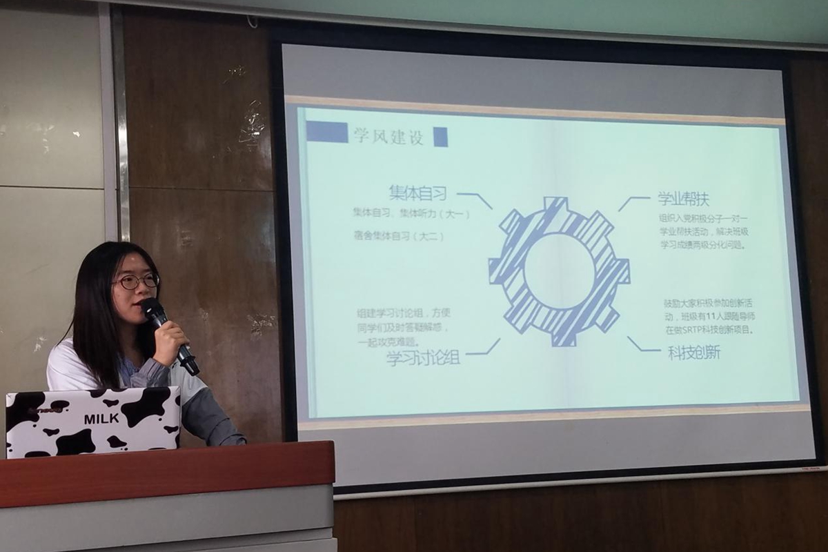随后,庞雪鹭同学结合学习和生活谈了作为一名支书的感受。她讲到团支书的日常工作包括每周例会、主题团日活动、推优大会、班级精神建设、配合好班长工作等。就自己的日常生活展开讲解,让各位新团支书们对自己以后的工作有所规划、有所期待。庞雪鹭同学分享了大一一年作为团支书的得与失,她说即使工作会让自己感到很累,失去了一定的自由,但是也从中获得了友谊,提高了办事效率,增强了自信。