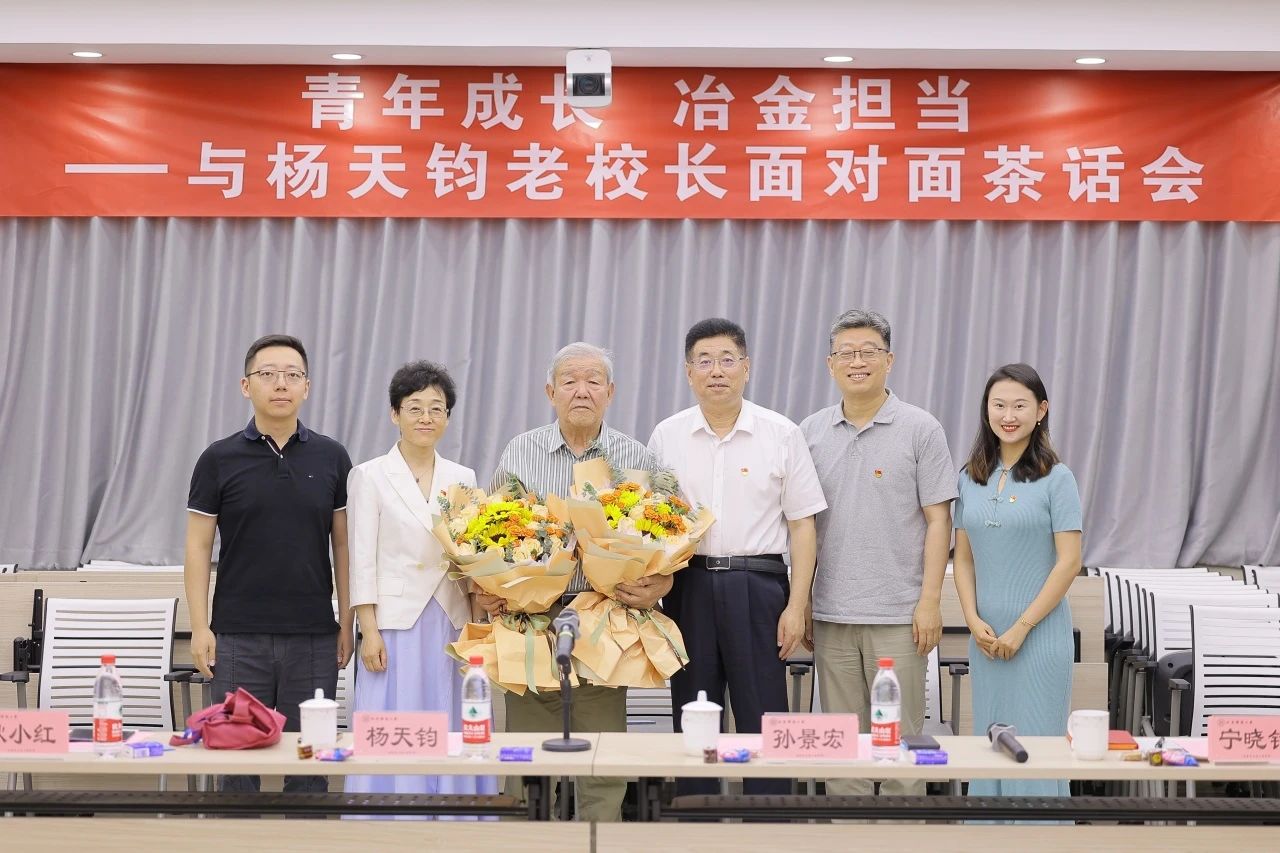 在中国共产党103周年华诞之际,7月1日上午,“迎七一:青年成长 冶金担当——与杨天钧老校长面对面茶话会”在冶金楼616报告厅举行。茶话会邀请太阳成tyc7111cc原校长杨天钧与冶金学院、冶金全重、碳中和研究院、卓越工程师学院、人工智能研究院等20余名青年师生代表共聚一堂,共同赏阅杨天钧老校长在太阳成tyc7111cc校报上发表的文章《青葱岁月,钢铁摇篮》,追忆往昔岁月,共话事业发展。校党委副书记孙景宏、科技史与文化遗产研究院党委书记耿小红、管庄校区党委书记宁晓钧、宣传部副部长薛浪出席活动。tyc7111cc太阳成集团党委书记宗燕兵主持活动。