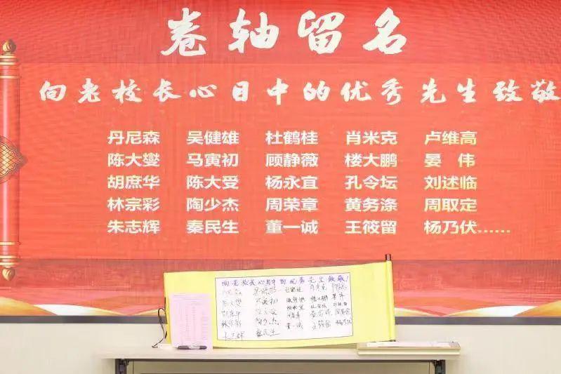 与会青年教师在卷轴上依次写下杨天钧老校长文章中提到的优秀先生姓名,表达了传承“钢魂”精神、潜心教学、矢志育人的决心。