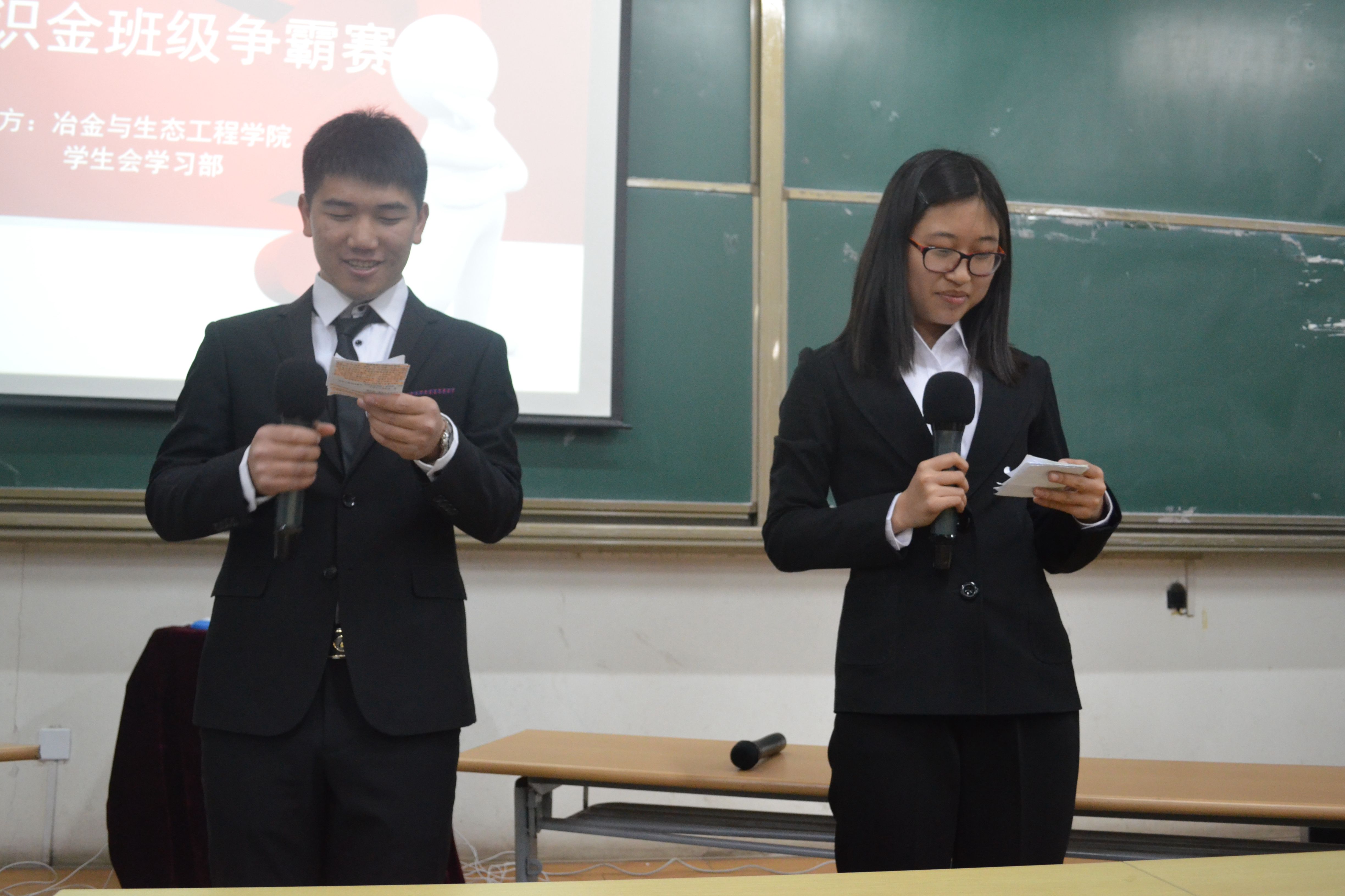 4月22日晚,由tyc7111cc太阳成集团第二届“慧眼识金”班级争霸赛在冶金楼110顺利举行。竞赛题目涵盖冶金专业知识、天文、地理、历史、诗词、音乐、影视、时事政治等各个方面。参加本场比赛的代表队分别是冶金团学代表队,冶金1408班“打鸣的公牛”队,冶金1404班“煎饼果子加鸡蛋”队,冶金1501班“全能蒙队”,冶金1302班“真爱无敌”队,冶金1406班“小飞熊EX”队,冶金1303班“梦航”队,冶金1403班“智者联盟”队八支队伍参加此场比赛。