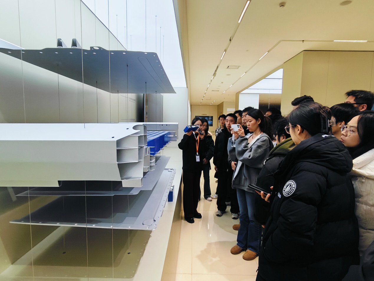走进技术展厅,工作人员首先讲解了小米汽车的发展历程及1700余项累计专利成果,随后引导大家参观摩德纳平台架构、9100t超级大压铸技术、“铠甲笼式钢铝混合车身”、“人车家全生态”区等核心展区。让学院师生深刻感受专业知识在产业中的实际落地场景。