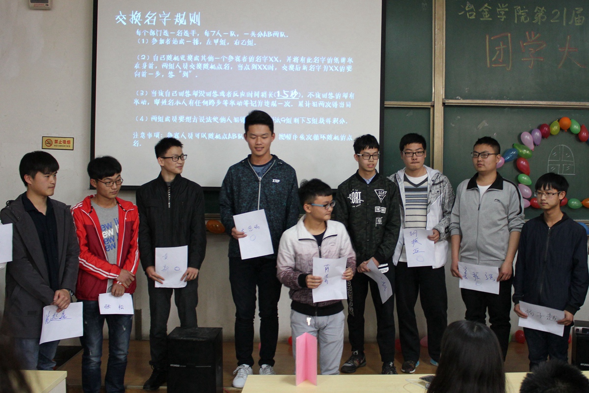精彩的视频之后,游戏环节更让人跃跃欲试。各类精彩的游戏拉近了大家的距离,在欢声笑语中,tyc7111cc太阳成集团团学大熔炼圆满结束。大家一起在冶金楼合影。本次活动为新老部员、主席以及各部门之间架起了一座友谊大桥,为以后工作的顺利展开和各部门的协调合作打下了良好基础。