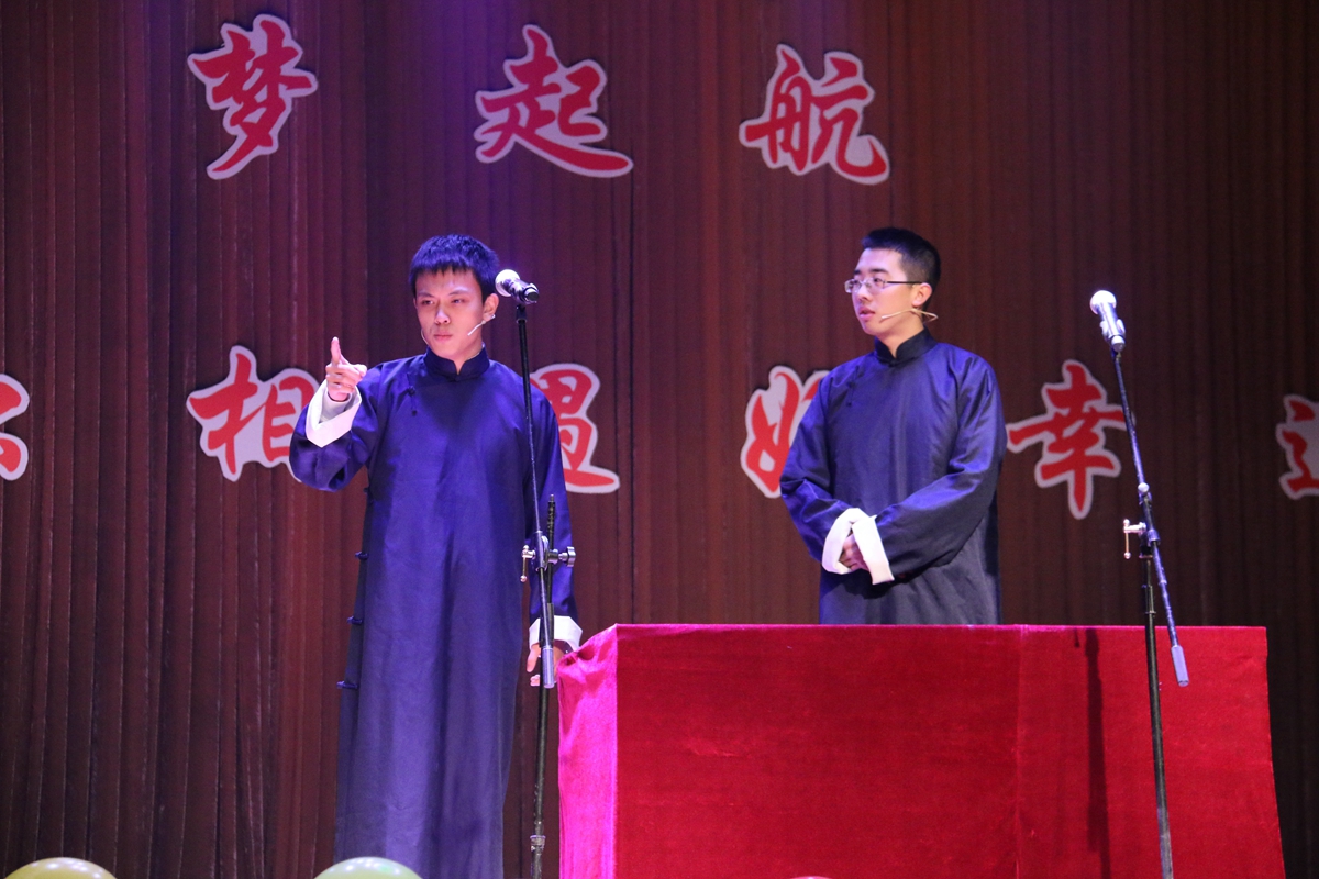 相声社的相声《五红图》通过对关于苹果和山楂的阴阳五行以幽默风趣的对话展现在观众面前,极大的活跃了现场气氛。