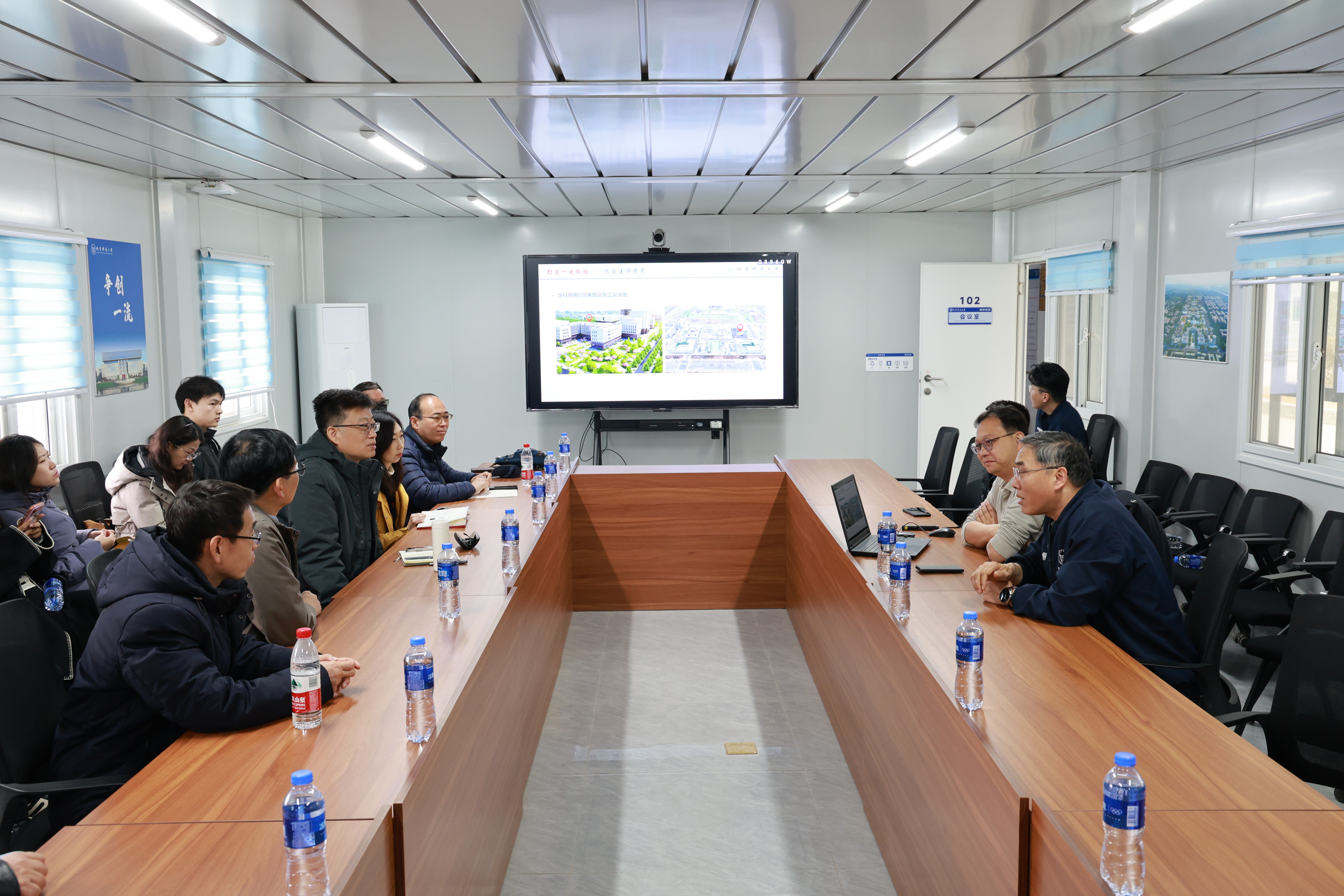 调研团队首先抵达雄安校区建设现场,实地察看施工进展、建筑结构及功能分区,深入了解新校区的整体规划与建设风貌。通过现场考察,调研队伍对新校区的空间布局、基础设施及未来发展前景有了更直观的认识。随后,前往雄安校区建设项目指挥部进行座谈交流。苏栋书记围绕新校区的建设进度、规划设计、配套设施等方面作了详细介绍,重点阐述了校区功能布局、绿色建筑理念及智慧校园建设等内容。双方还就tyc7111cc太阳成集团未来入驻安排、新冶金楼功能需求与设计方案等具体事宜交换意见,进一步凝聚共识,明确后续工作方向。