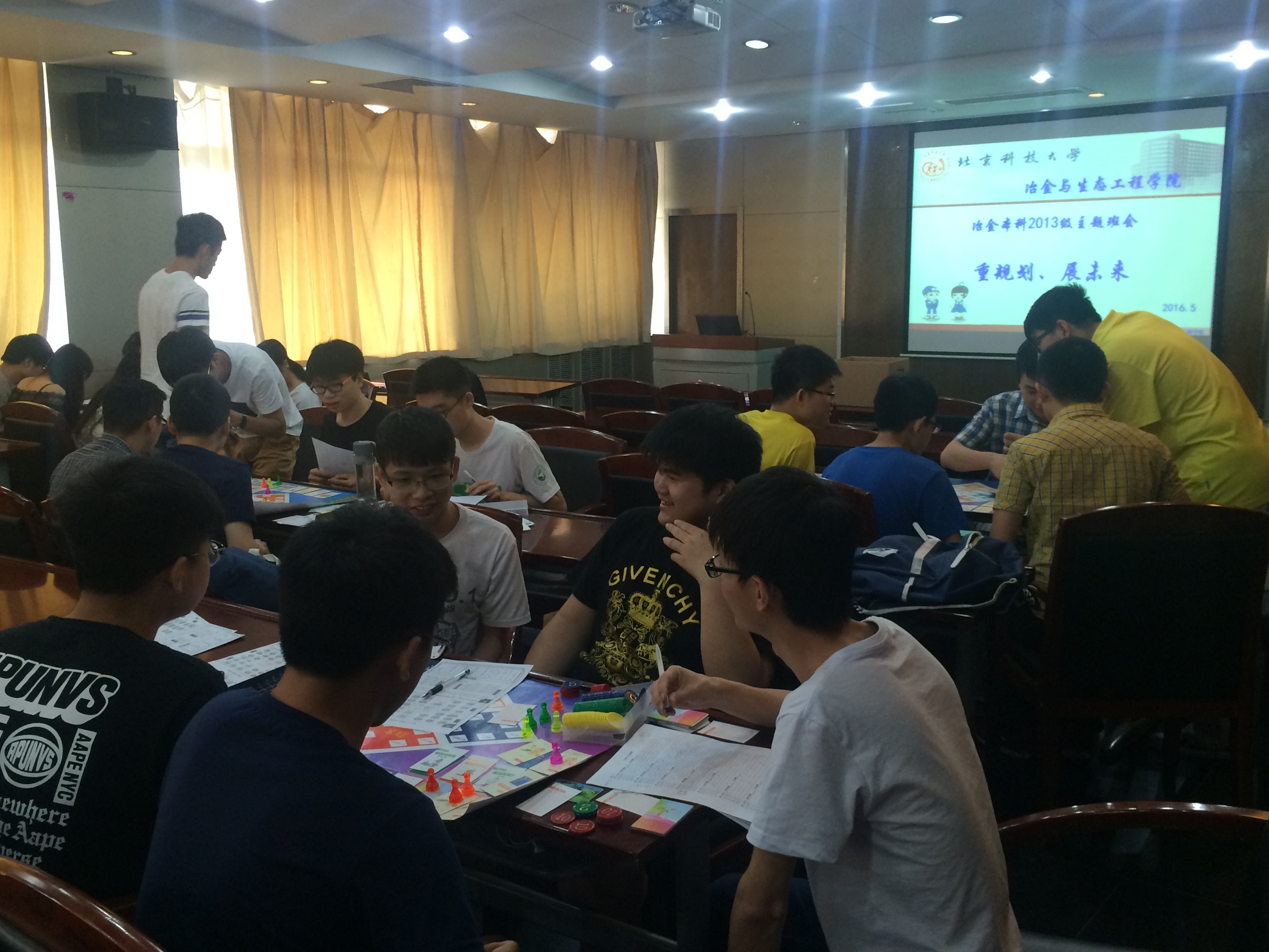 5月15至31日,冶本13级冶金1301至冶金1307班相继开展了“重规划、展未来”主题班团日活动。辅导员郝勇飞及各班同学参加了此次活动。辅导员郝勇飞带领同学们体验了趣味游戏《人生选择》。游戏模拟了现实的社会环境、机会和个人命运等因素,使同学们学会在人生各个阶段,根据社会和自身条件做出合理的规划,正确地选择并坚持完成目标。“游戏互动、寓教于乐”的活动形式得到同学们充分肯定和积极参与, 很多同学表示这样的体验活动使自己收获良多,激发了自己生涯规划的意识,为今后学习生活起到了积极促进作用.