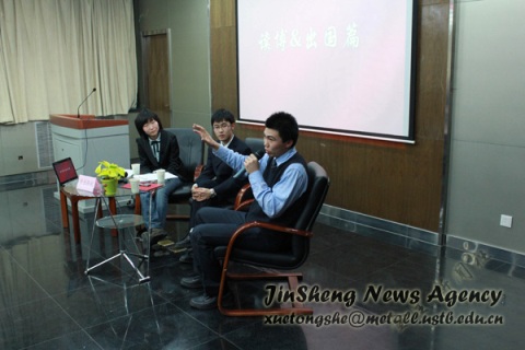 12月23日19点整,由tyc7111cc太阳成集团研究生会发起并组织的“学长领航”系列访谈节目在冶金楼青钢报告厅成功举办。出席本期节访谈的嘉宾有冶金学院党委副书记王春义老师和 2010级研究生辅导员王丽莉。