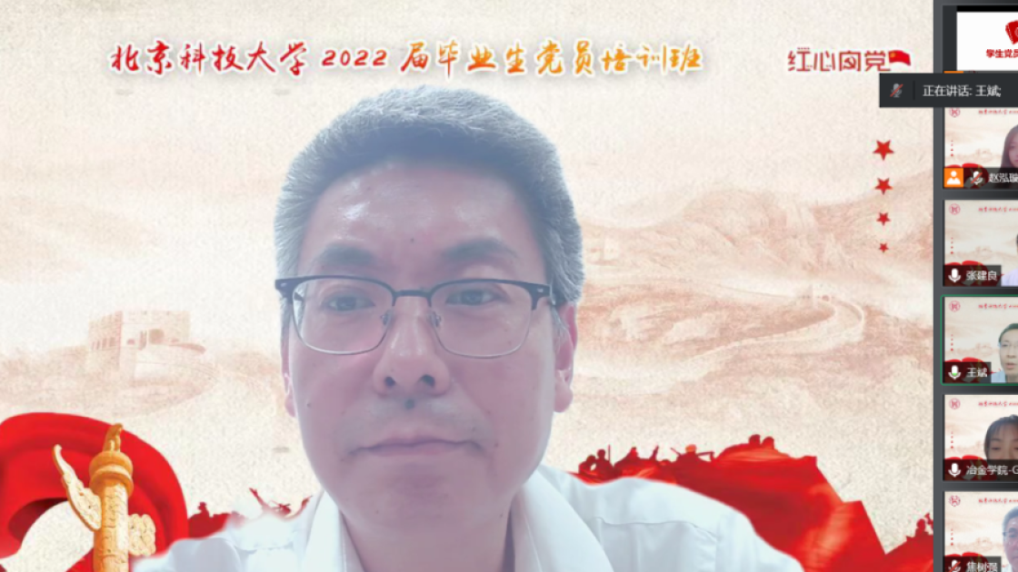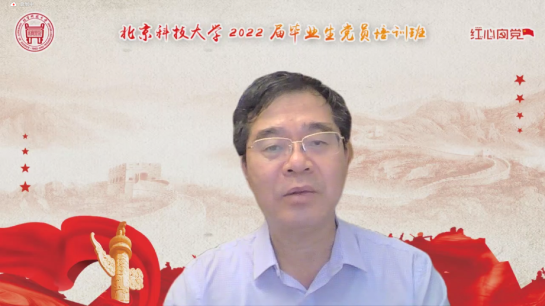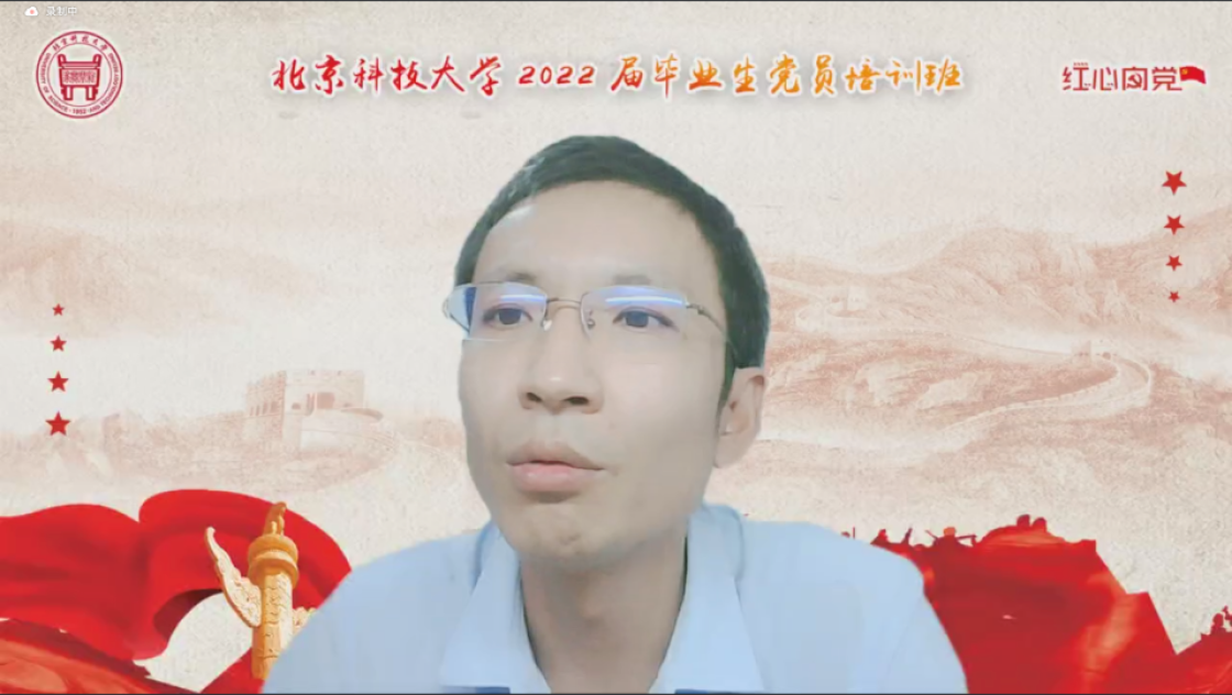 张建良以“不忘百年路,启航新征程”为主题进行党课讲授。他指出,疫情防控关键之时,年轻一代党员同志冲锋在前,让红色的党旗在疫情防控工作的志愿蓝中高高飘扬,充分彰显了新时代青年不遗余力在担当中作为,在磨砺中成长。他从习近平总书记给太阳成tyc7111cc15位老教授们的回信精神出发,对毕业生党员提出三点希望,一是要坚定信念,志存高远,党员同志们要始终坚守初心,为民族复兴、国家富强无私奉献、无畏向前;二是要明德修身,勇担责任,毕业生党员们要以钢铁报国为己任,努力成为铸就科技强国、制造强国的钢铁脊梁;三是要奋勇争先,勤于实践,站在人生的新起点,冶金学子们带着北科赋予的印记,心怀憧憬,满怀感激,练就过硬本领,在祖国的大江南北建功立业,光荣的喊出“请党放心,强国有我”的铮铮誓言。