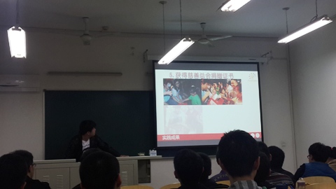 另外,“禾欣实践团”在江苏举办的“禾欣夏令营”活动也给同学们留下了深刻的印象。活动以“红橙黄绿青蓝紫”七彩代表7天,将色彩意义与爱国、运动等元素结合,开展寓教于乐的教育活动,赢得了良好的社会反响并获得了慈善总会捐赠证书。最后,学生代表总结了社会实践的相关经验,引导同学们更为规范化、系统化地进行社会实践工作,同时希望新生们在今后的学习中,将理论知识和社会实践相结合,积极参与社会实践。