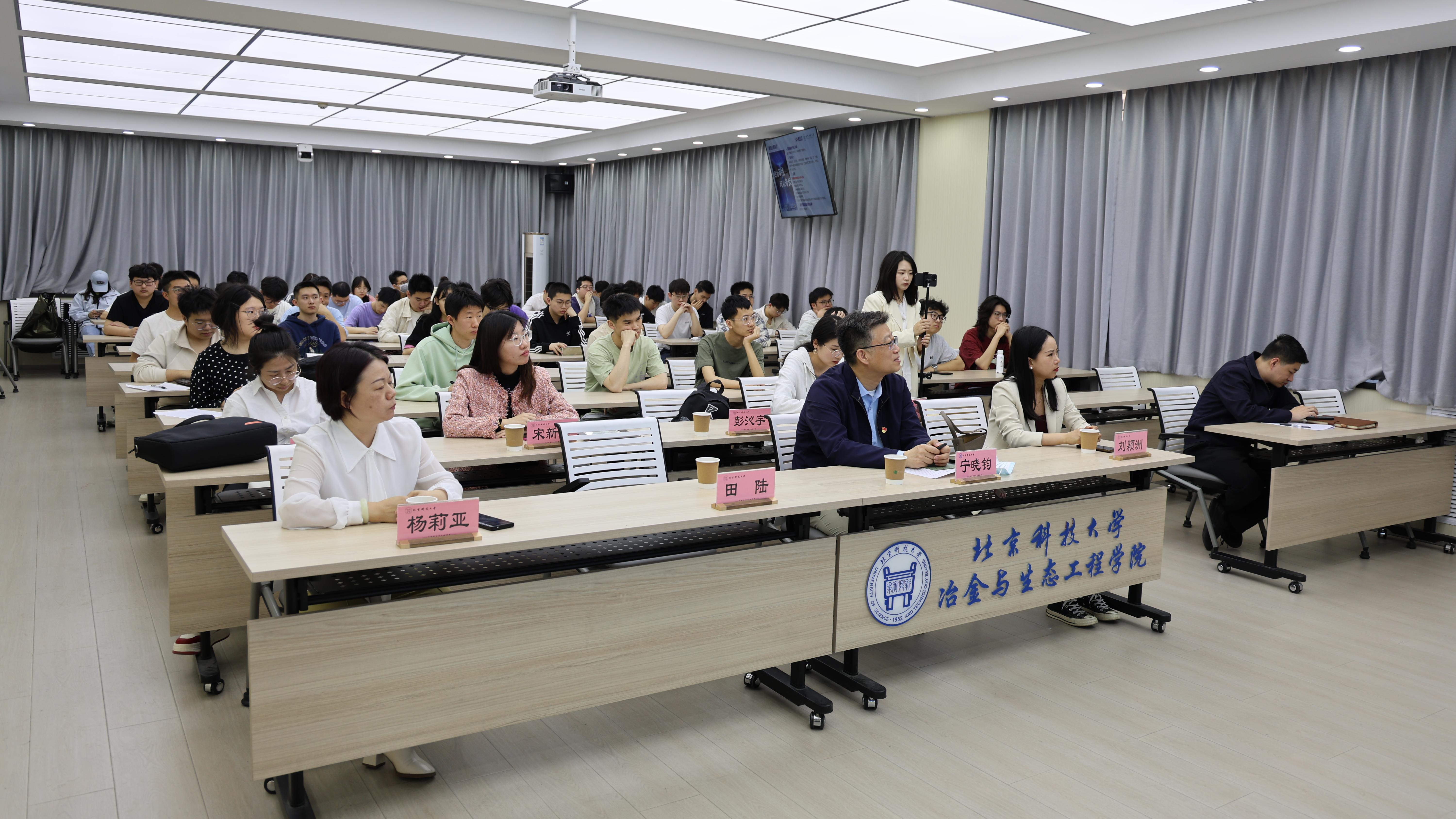 宁晓钧向田陆一行的到来表示热烈欢迎。他介绍了田陆的主要履历,并对田陆的深情回馈表达感谢。他表示,希望北科学子能够以此为契机,更好了解行业发展、深化专业认同,合理选择成长路径和未来职业,成为为国奉献钢筋铁骨的高素质人才。